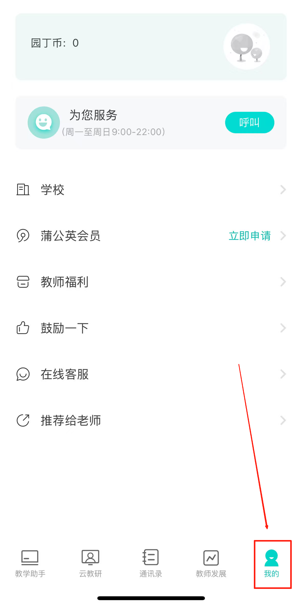 2、点击底部导航栏"我的"进入个人中心,在这里可以查看园丁币余额,还能申请蒲公英会员享受更多权益哦。