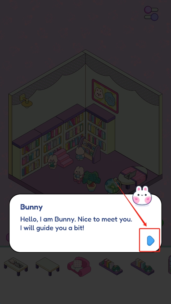 1、首先,点击对话框中的蓝色按钮以继续游戏。