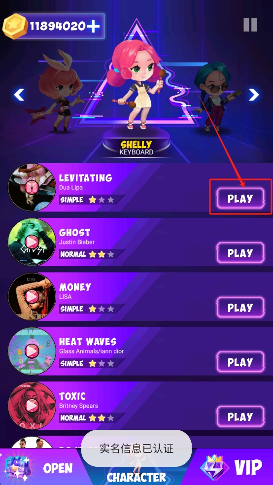 1、选择一首歌曲并点击“PLAY”按钮开始游戏。