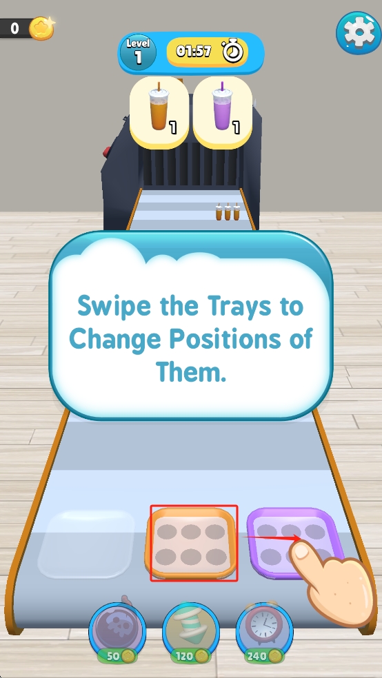 1、首先,通过滑动屏幕来交换托盘中物品的位置。