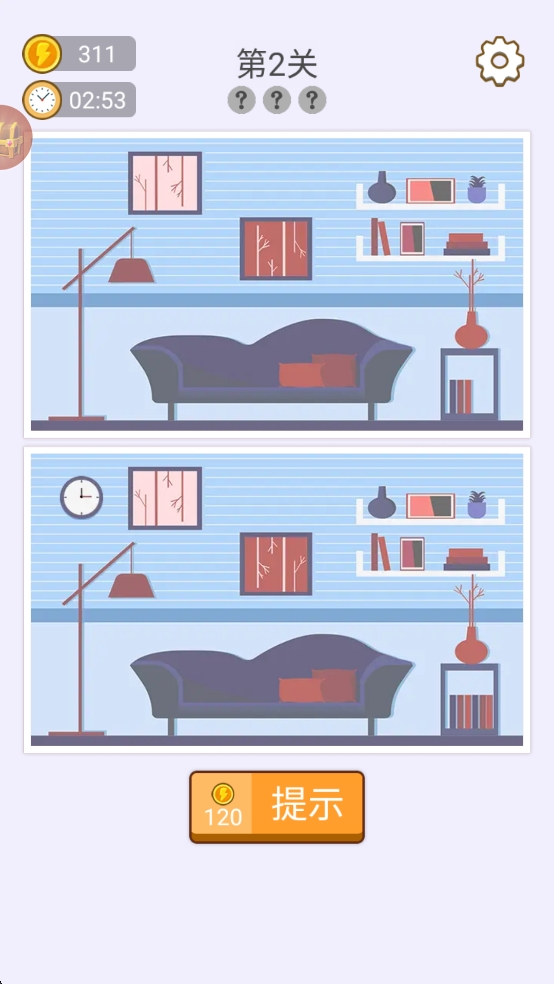 4、超级解压神器:柔和的背景音乐搭配清脆的提示音效,找茬过程特别治愈,玩10分钟就能放松心情。