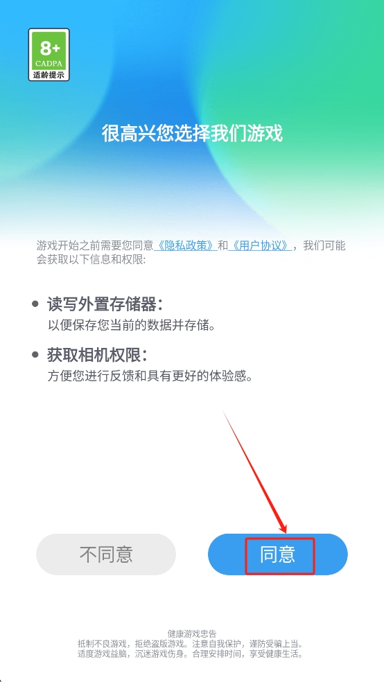 1、首先,点击“同意”按钮以接受条款并开始游戏。