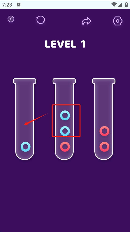 1、灵活策略规划:相同颜色圆环需归至同一区域,但移动路径受限,需提前规划步骤,避免卡关。