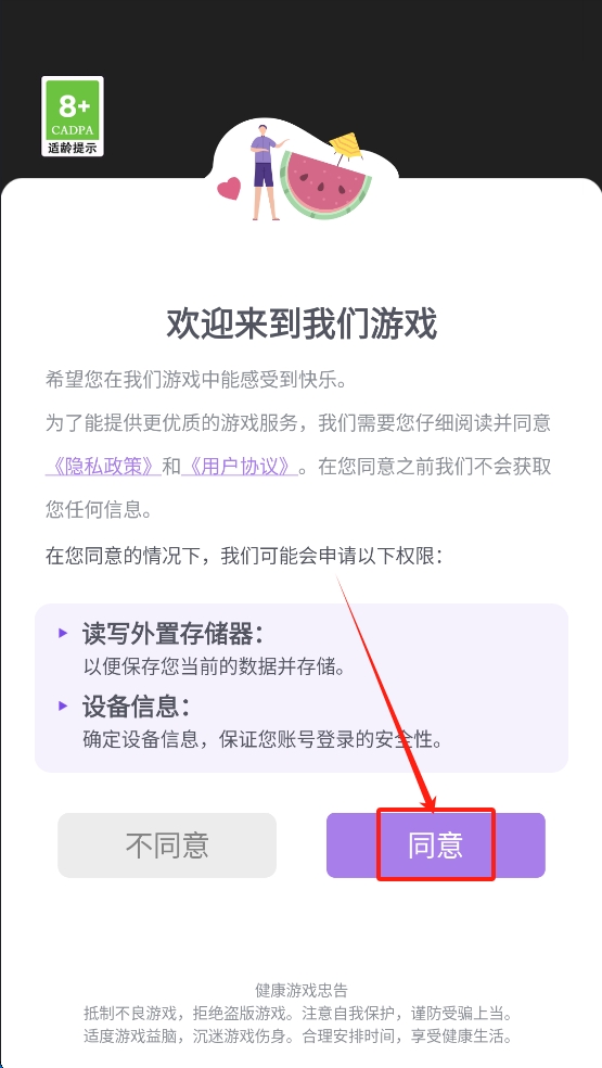 1、点击“同意”按钮,接受隐私政策和用户协议。