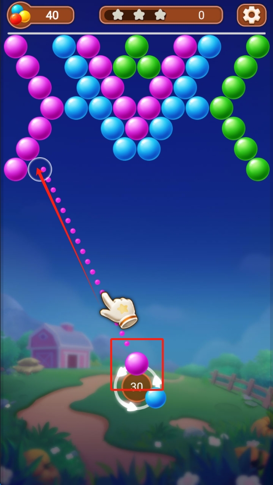2、精准瞄准发射:拖动手指调整角度,计算反弹轨迹,确保泡泡能准确命中目标位置。