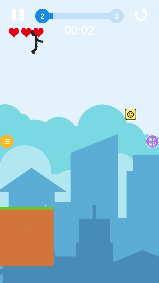 3、精准弹射前进:在最大摆幅时松开绳索,将火柴人弹射到更远更准确的位置中去。