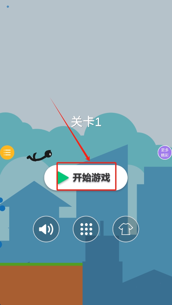 2、点击“开始游戏”按钮,选择关卡1进入游戏。