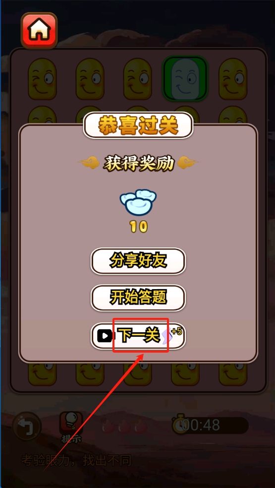 4、最后,完成关卡后点击“下一关”继续游戏。