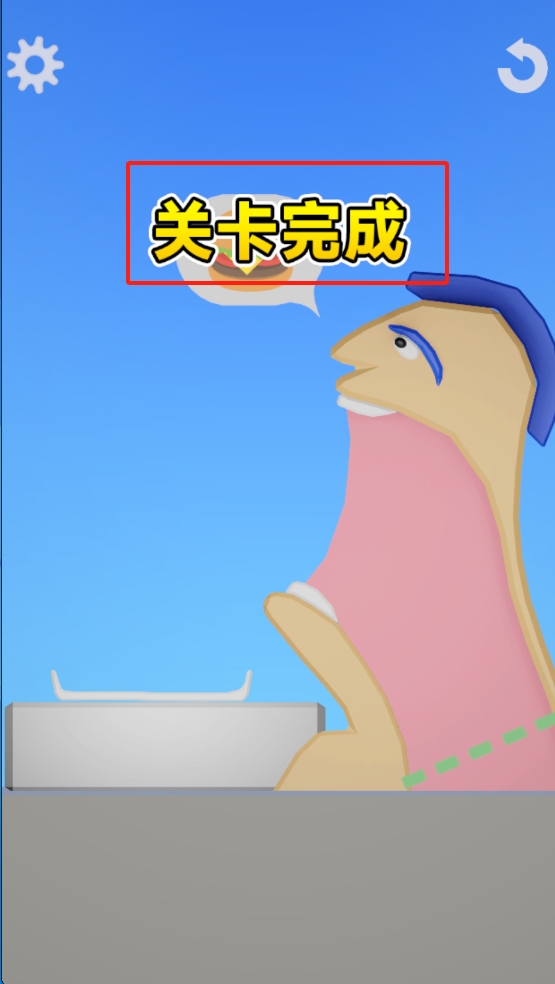 3、拖动食物进入口中成功后,会显示“关卡完成”。