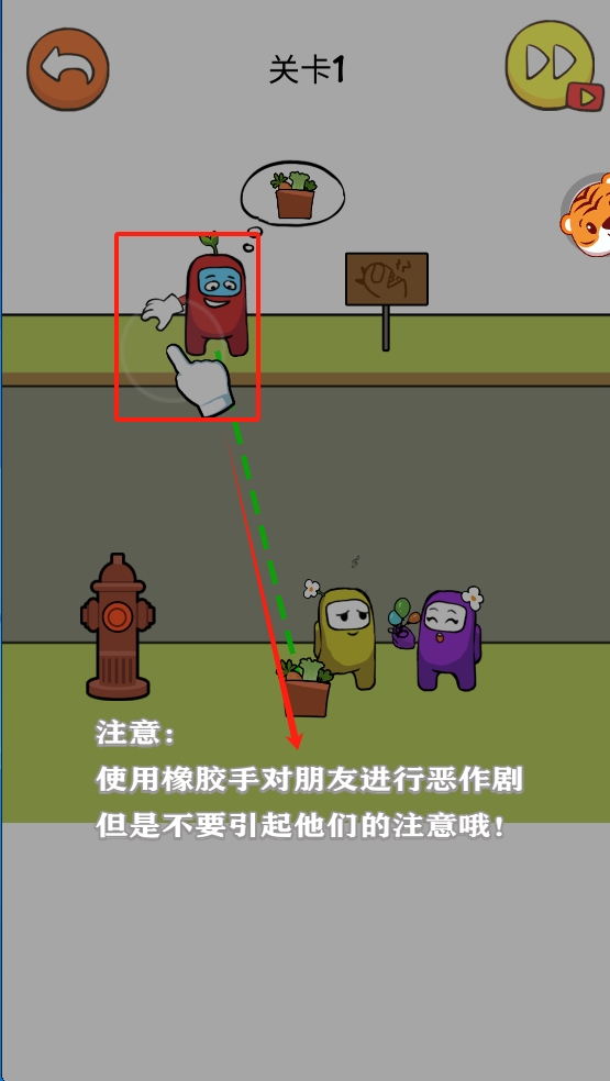3、完成恶作剧后,点击箭头按钮进入下一关。