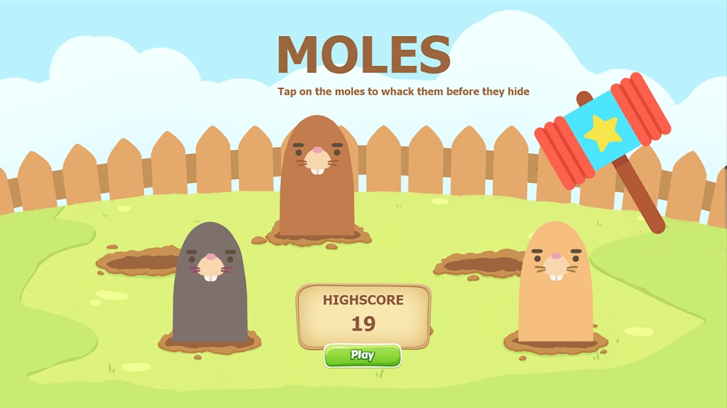 2、灵活锤子操作:玩家需要运用灵活的锤子操作和敏捷的反应能力,击败地鼠,完成关卡。