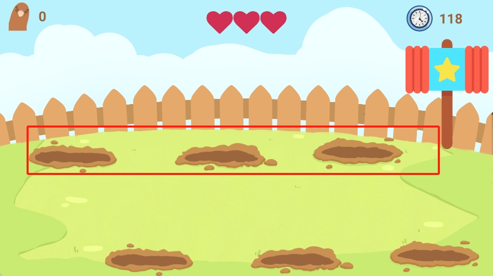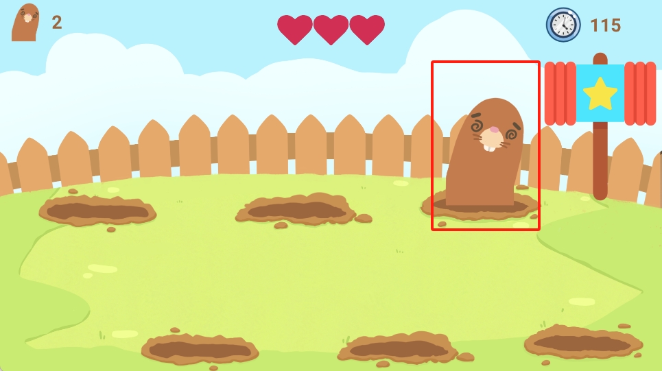 2、敲打地鼠:使用锤子快速敲打冒出洞口的地鼠,完成关卡任务。