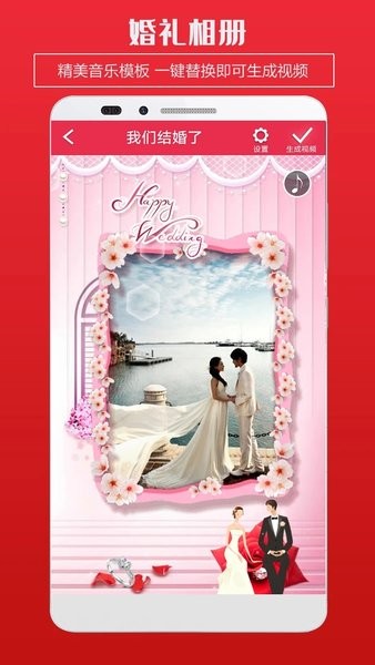 1、软件突破传统纸质请柬形式,提供动态视频生成功能,用户只需替换模板素材即可自动生成包含背景音乐的婚礼MV,让邀请函更具视听感染力。