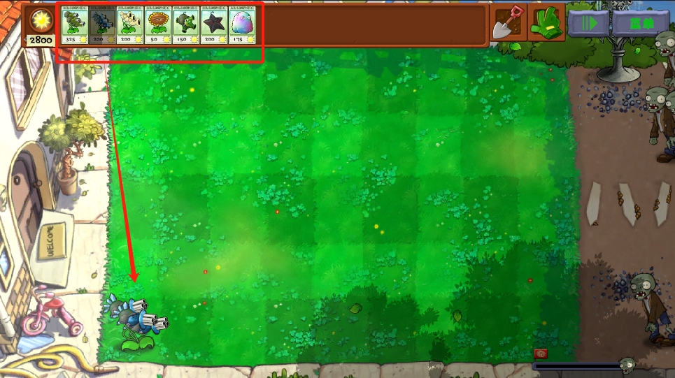 2、布置植物:根据关卡特点,合理布置植物,抵御僵尸的进攻。