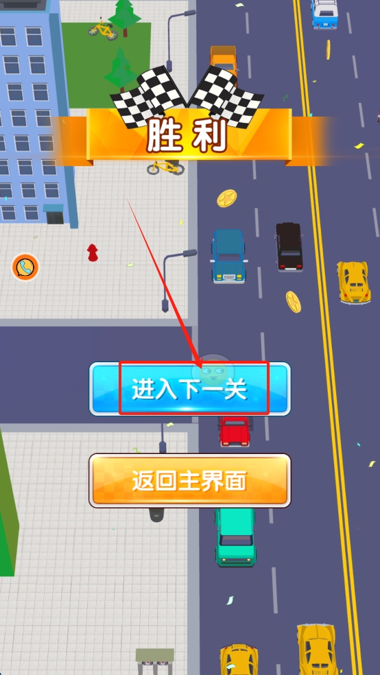 4、完成关卡后选择“进入下一关”或“返回主界面”。