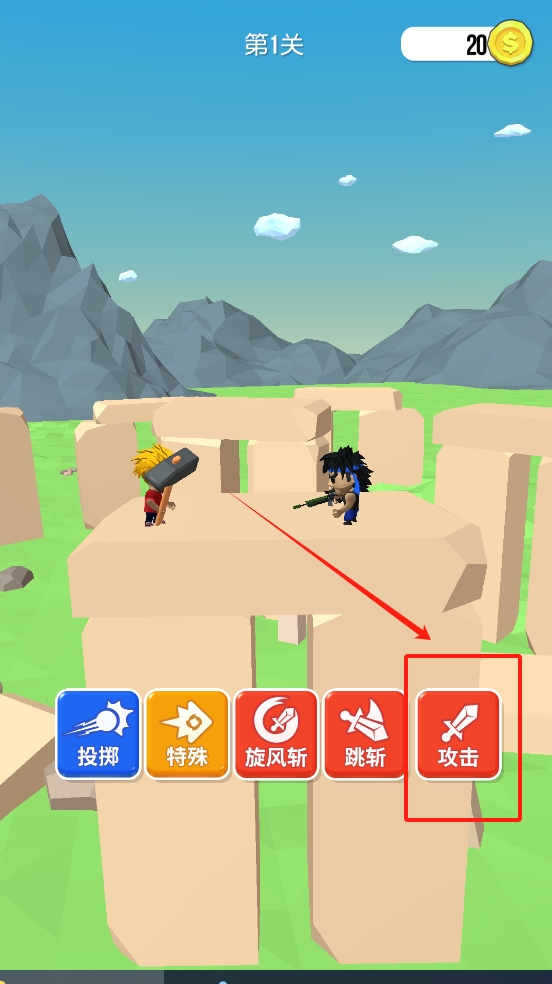 3、选择“攻击”按钮进行游戏操作。