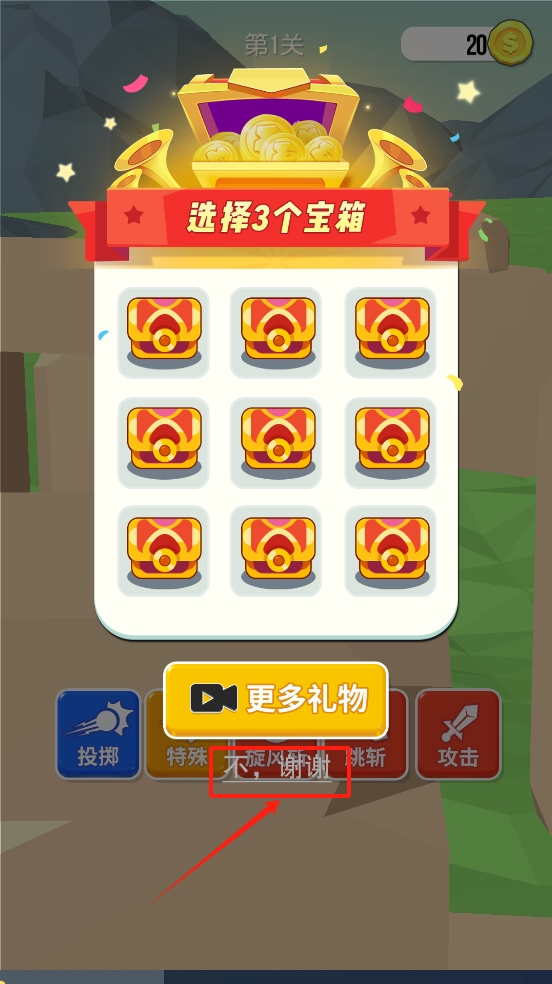 4、选择三个宝箱并点击“更多礼物”按钮或不,谢谢获取奖励。