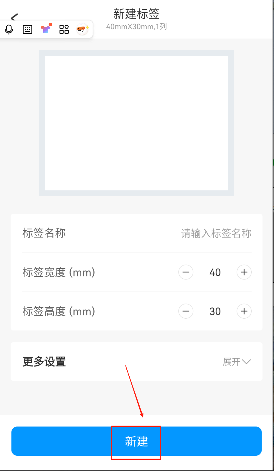 2、输入标签名称、标签宽度、标签高度,点击新建即可。