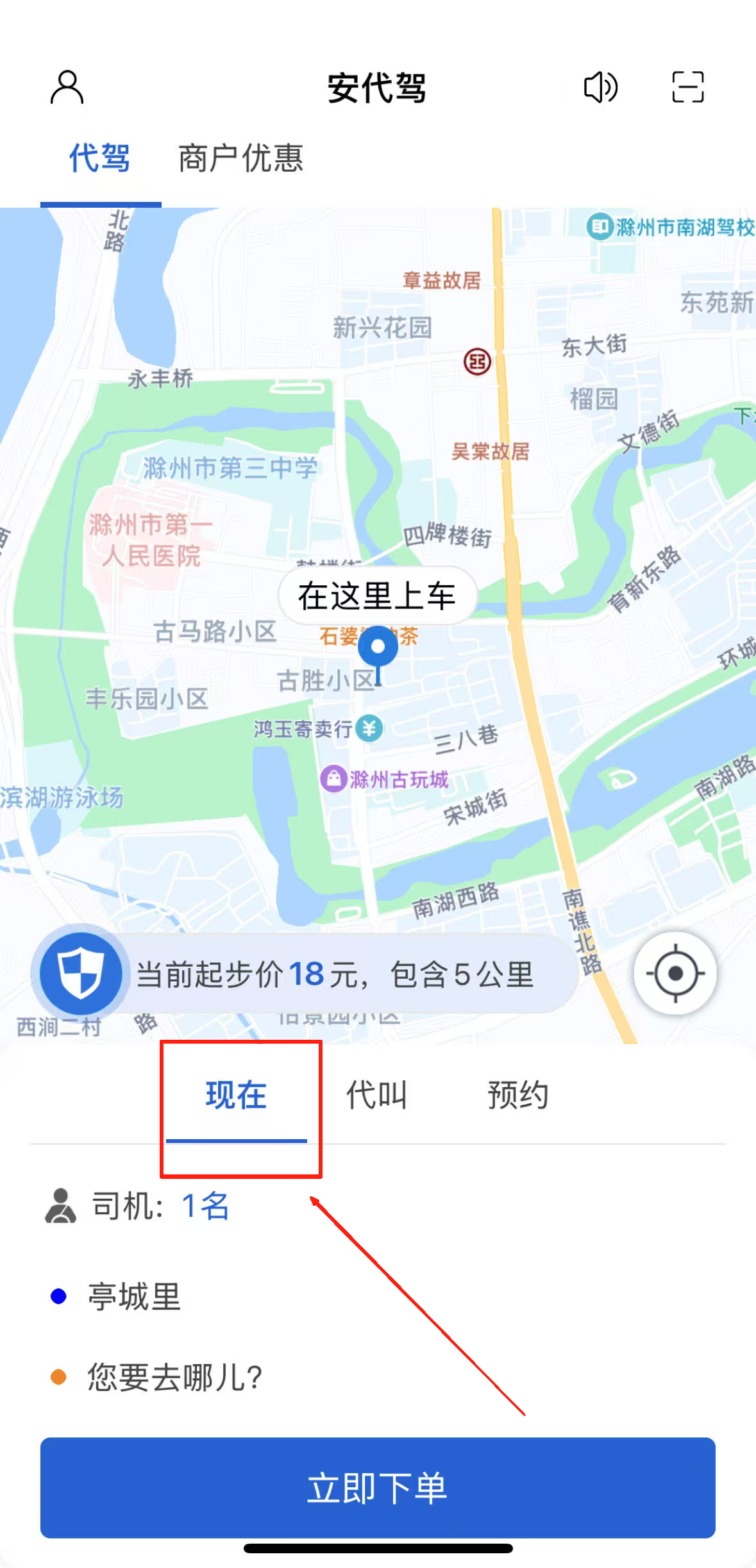 2、首页选择服务类型,现在,输入地址并提交订单。