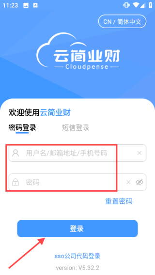 2、进入登录界面,输入账号、密码,点击【登录】即可。