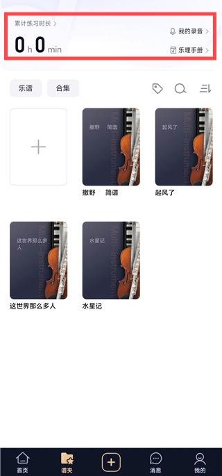 2、切换到谱夹页面,在这可以看到练习时长、我的录音等。