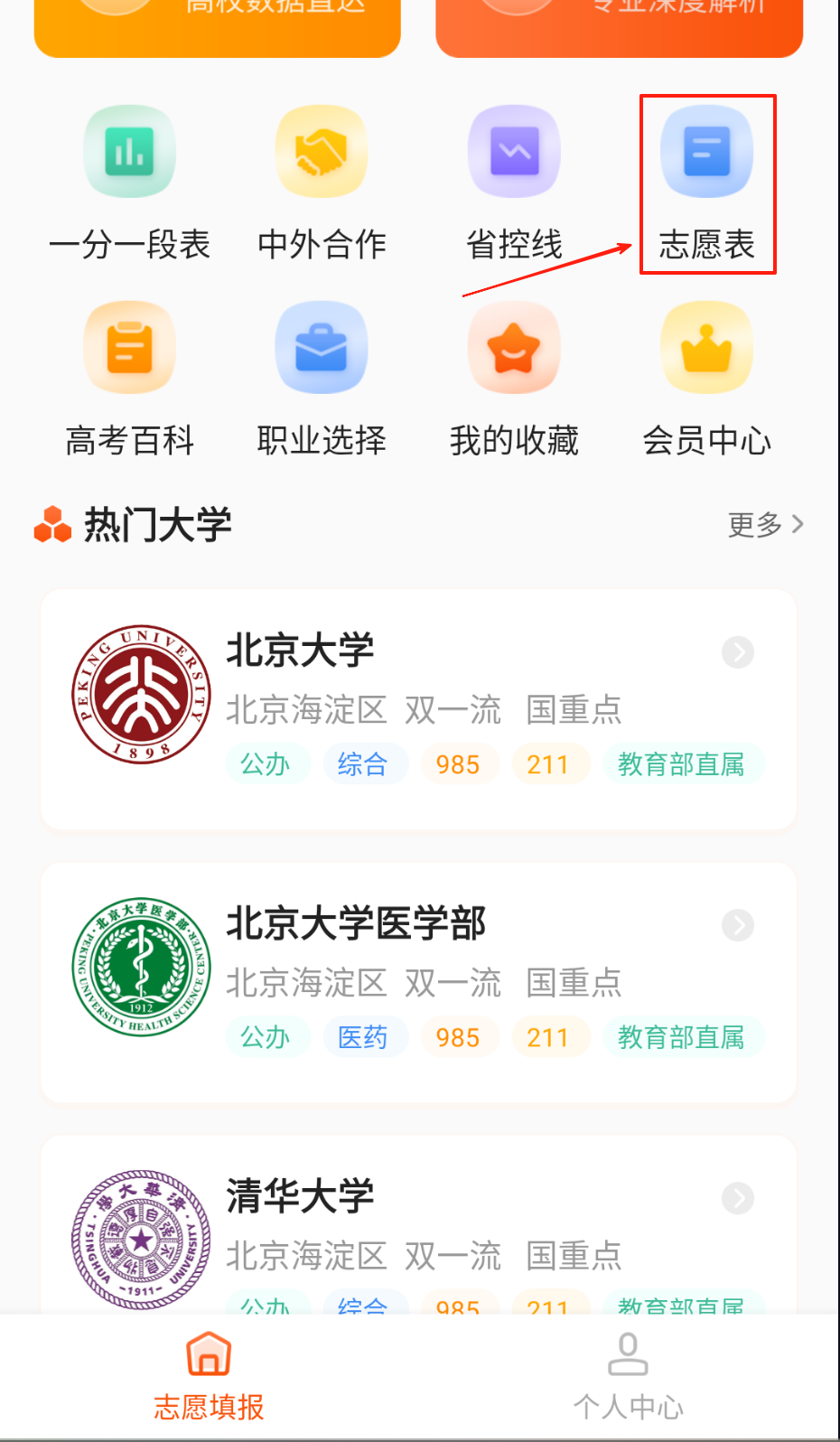 2、智能推荐算法结合五维评估模型,综合考分排名、专业热度、院校层级和地域偏好等要素,生成三种梯度填报方案供用户自由选择。
