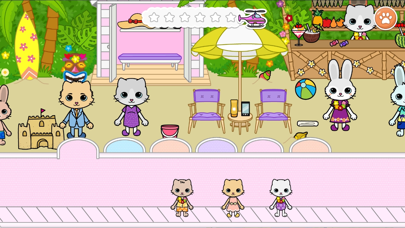 4、场景细节丰富生动,从沙滩上的贝壳到厨房里的厨具,每个物品都可以互动,带来真实的过家家体验。