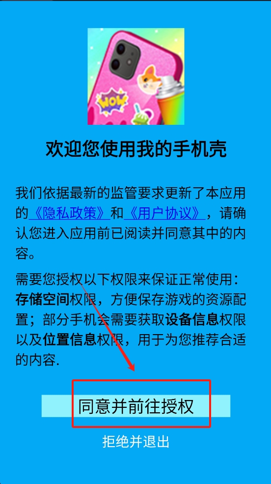 1、点击“同意并前往授权”以接受隐私政策和用户协议。