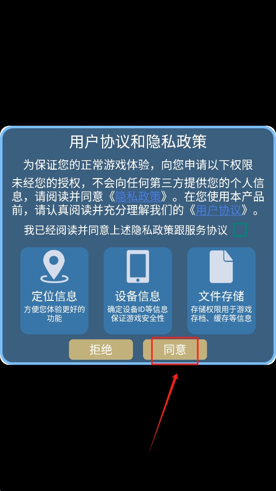 1、阅读并同意用户协议和隐私政策,点击“同意”按钮继续。