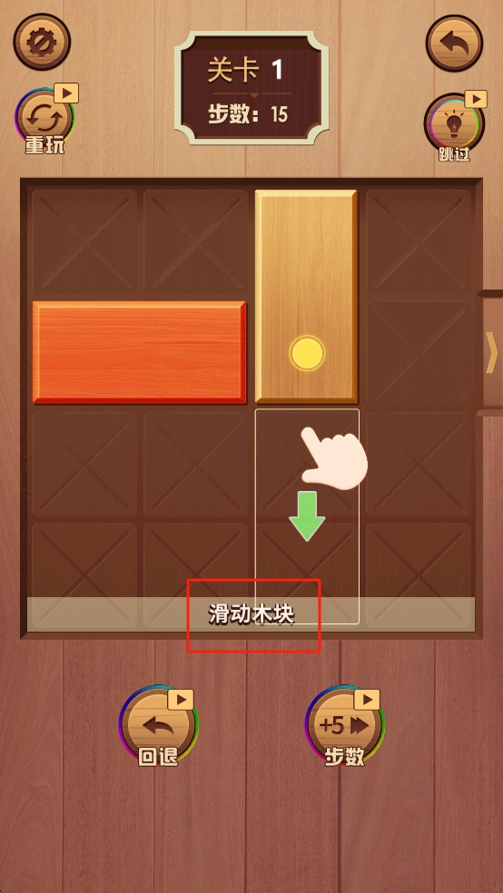 3、按照提示滑动木块,完成关卡目标。