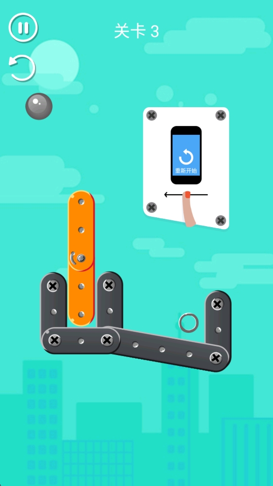 2、长按屏幕滑动木块到螺丝钉处完成。