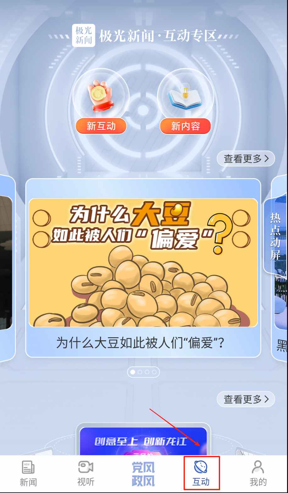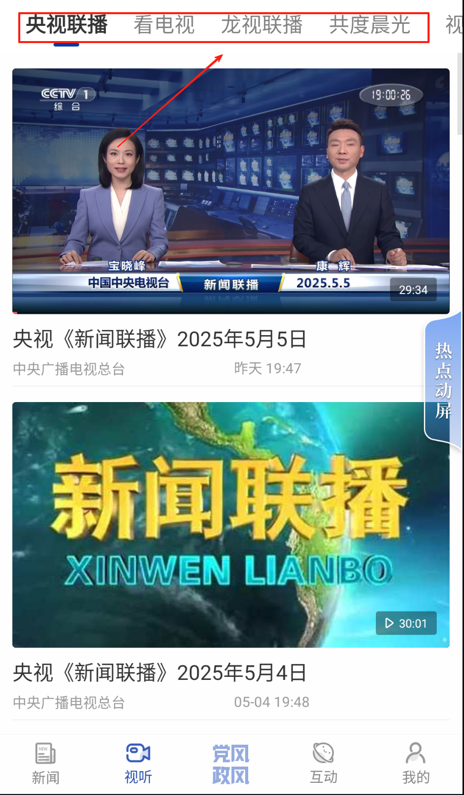 4、对于视听爱好者,首页的视听标签下提供央视联播,龙视联播等视频内容,只需轻轻点击就能观看。