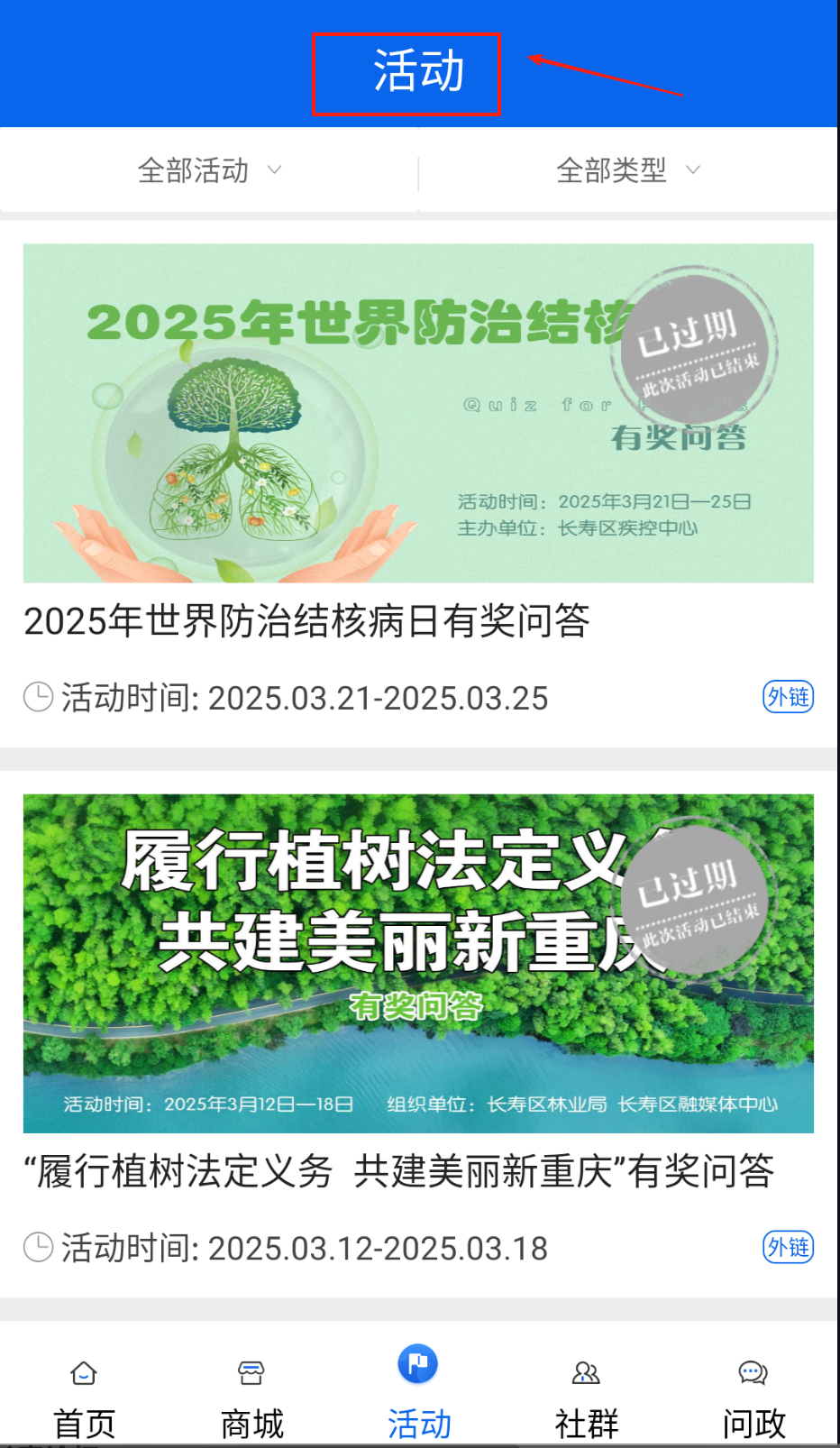3、在“活动”板块,可同步参与社区组织的线下文化活动。