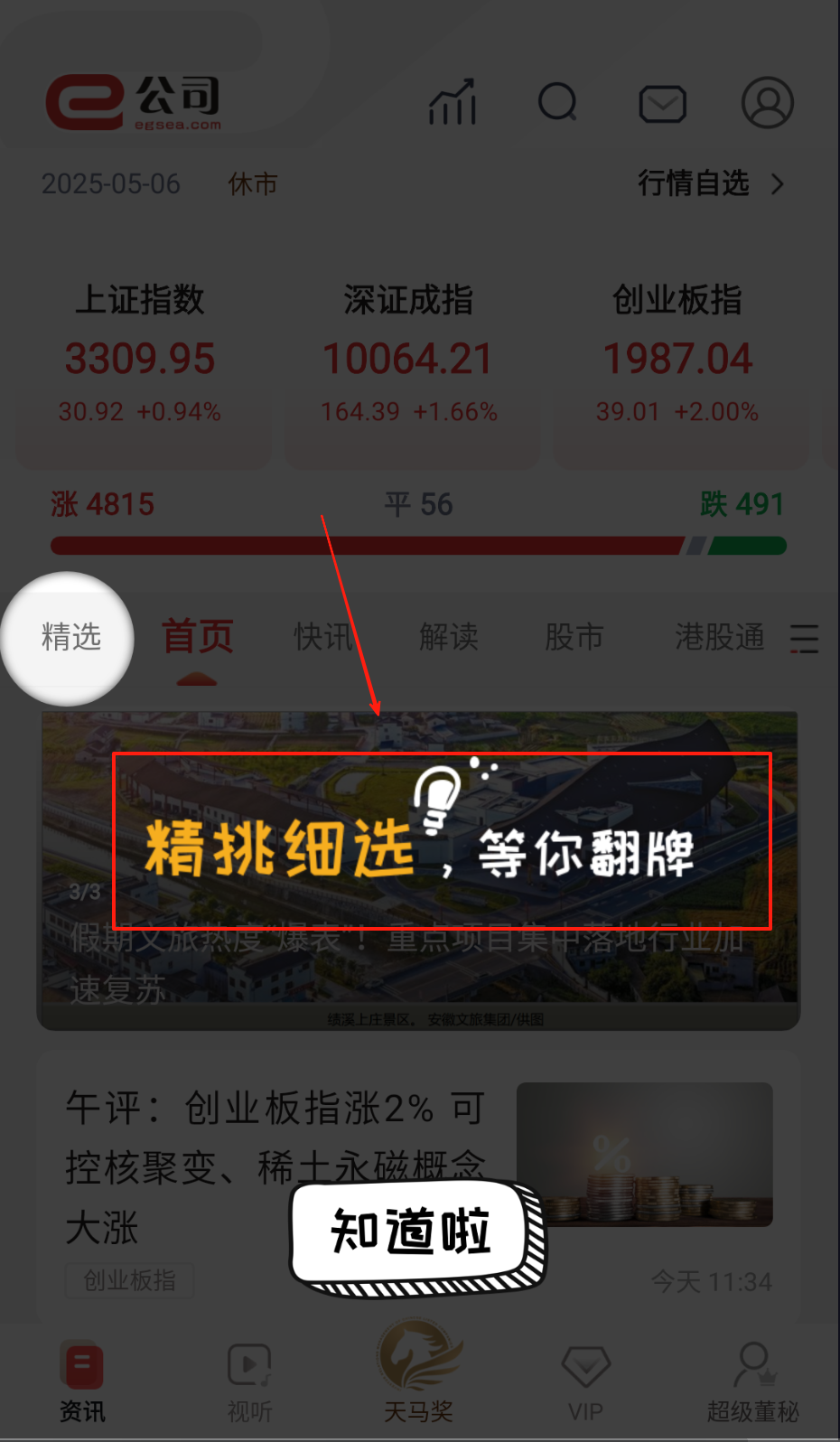 2、精选、首页和快讯等,精挑细选,等你翻牌。