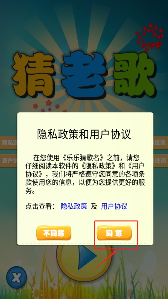 1、点击“同意”按钮接受隐私政策和用户协议。