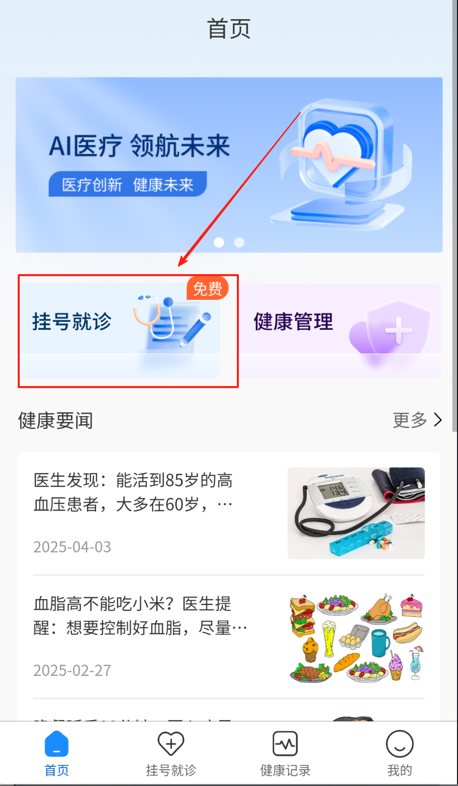 1、点击挂号就诊中科室分类选择心血管或内分泌科,完成AI预诊问卷提交。