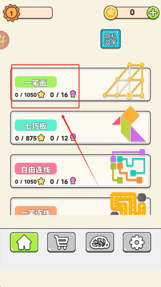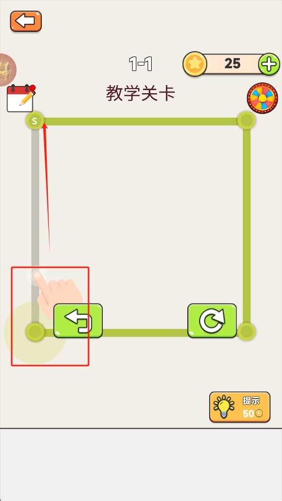 3、按照游戏提示进行操作,比如一笔完成图形。