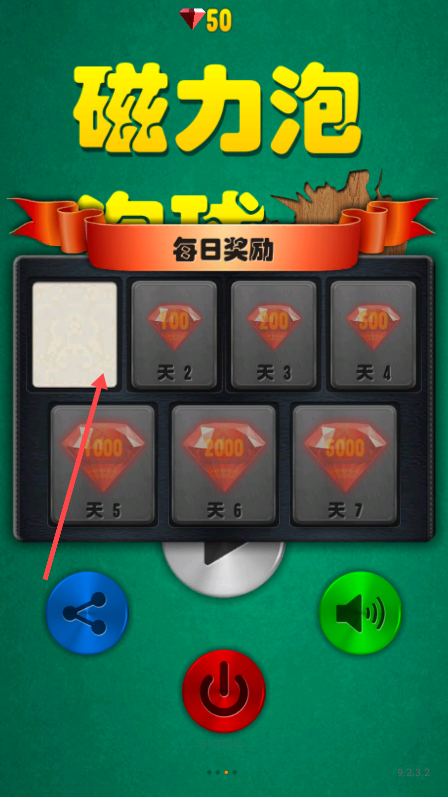 1、点击开启游戏进入界面,领取每日奖励。