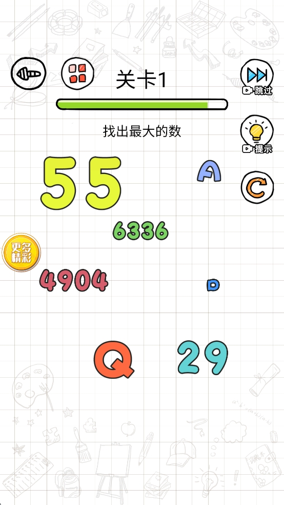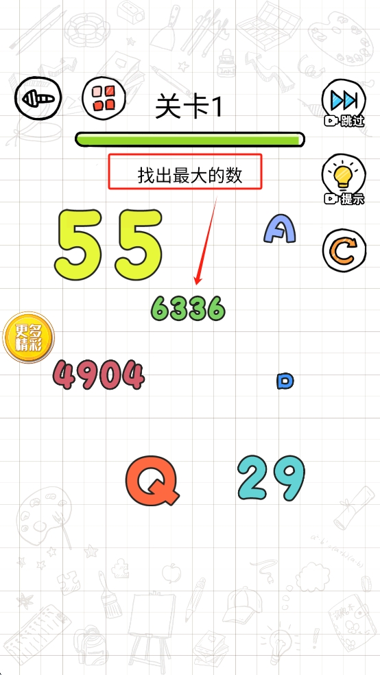 1、基础操作说明:点击选择答案,滑动翻看提示,长按可跳过当前题目,操作简单直观。
