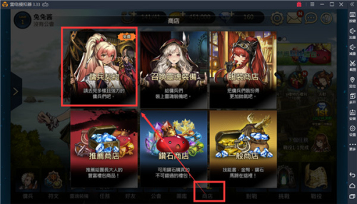 3、然后在主界面找到商店,进入佣兵契约。