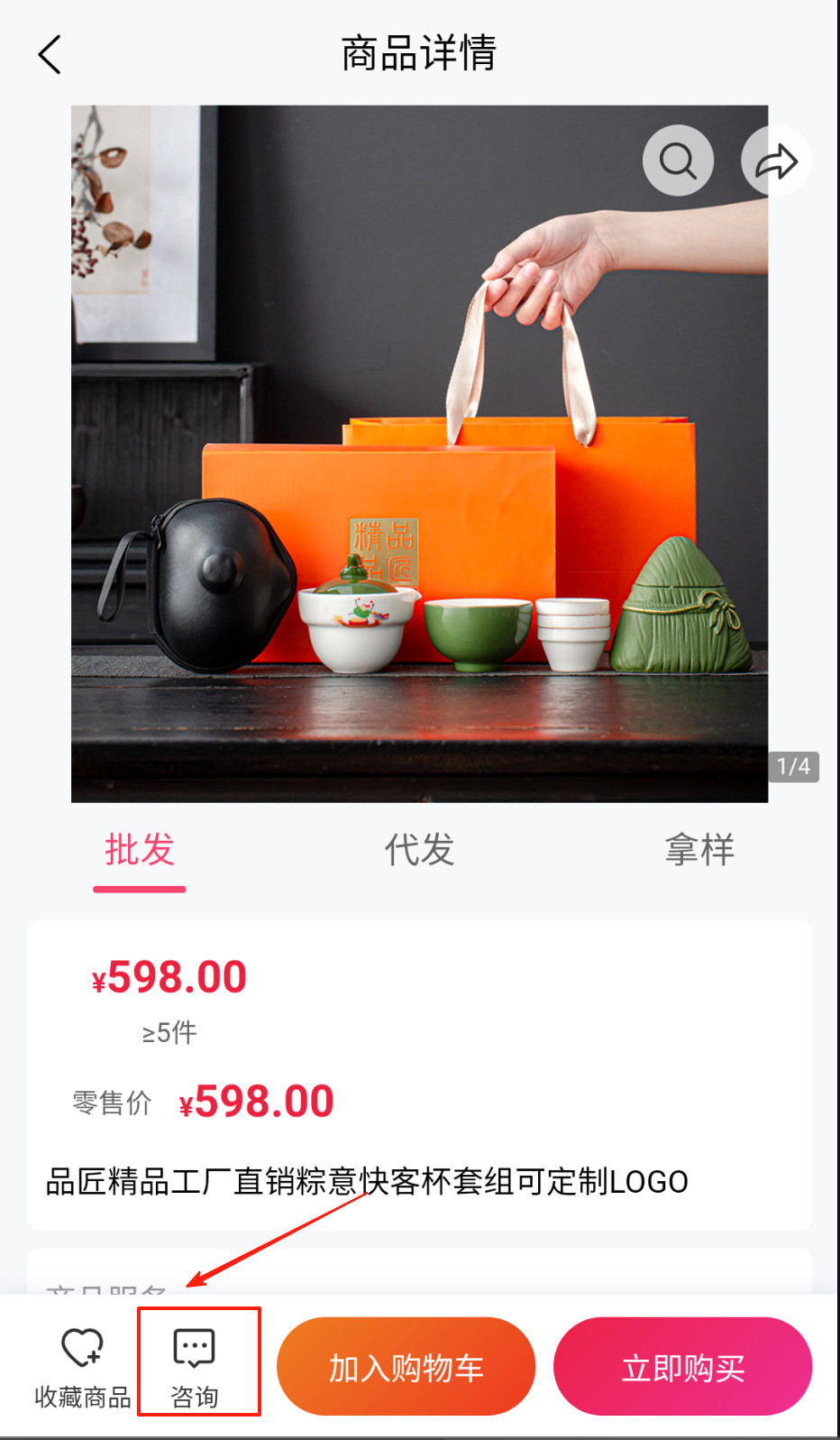3、选中商品后联系在线客服,可申请样品确认再批量下单采购。