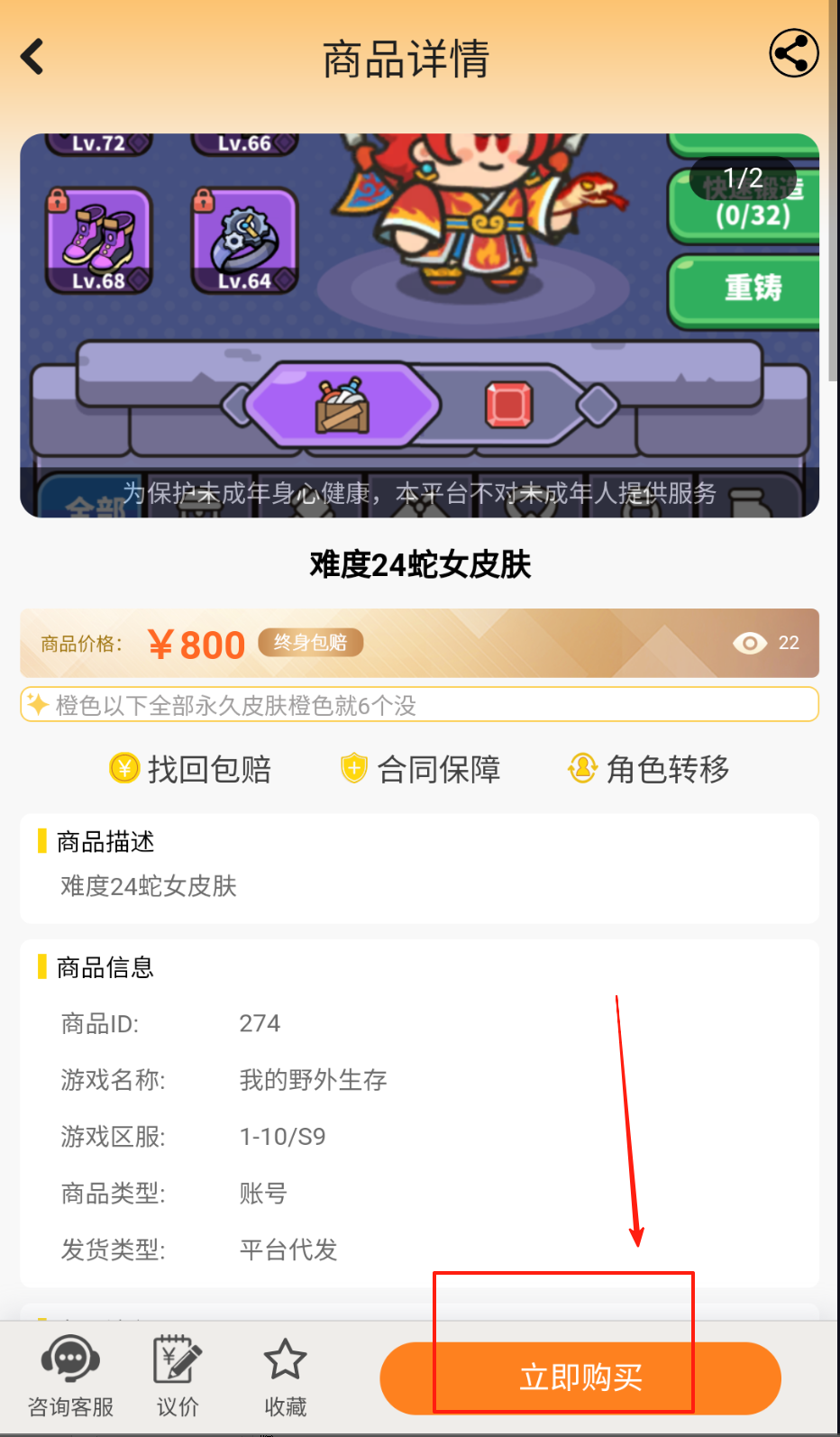 3、点击立即购买进入担保交易流程,完成实名认证后等待客服确认交割。