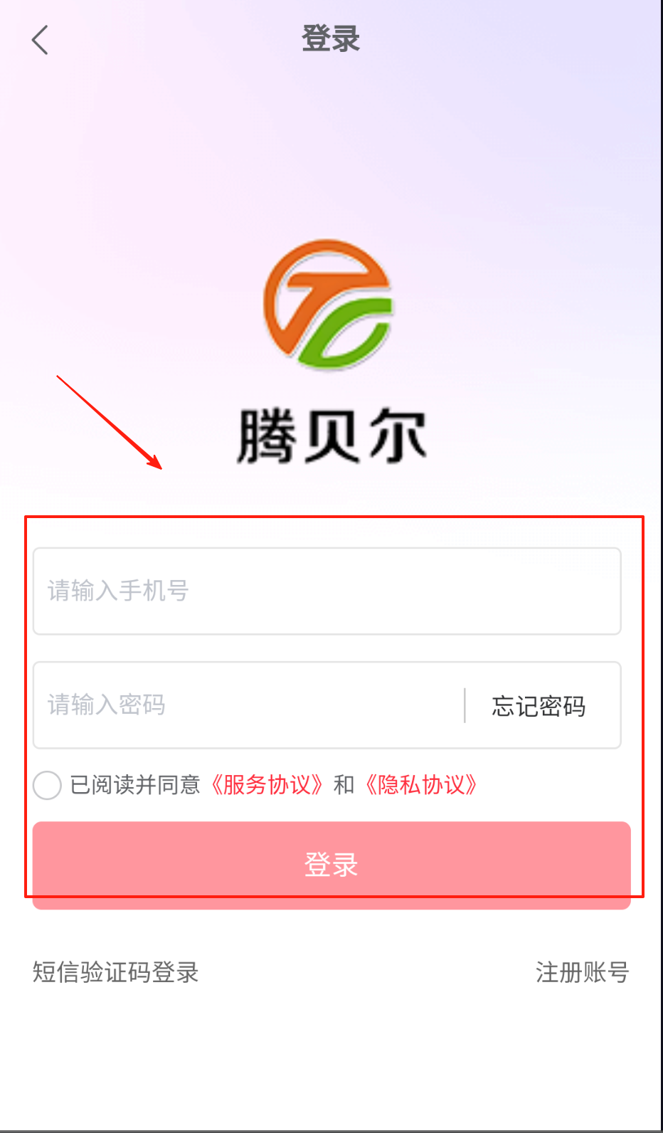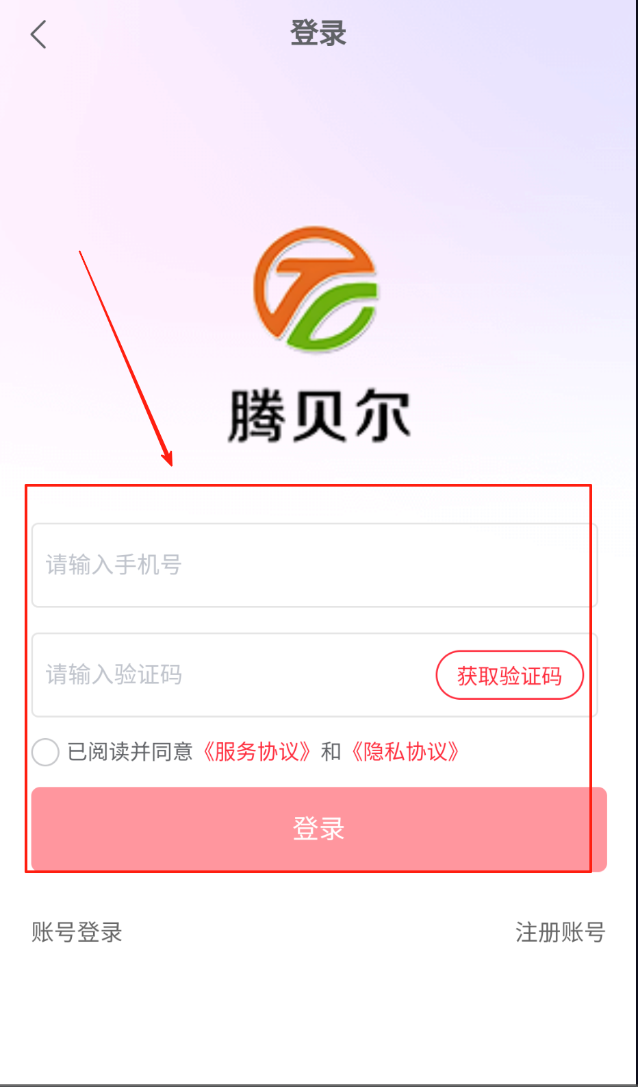 2、登录时在首页输入注册手机号,点击获取验证码按钮接收短信,将6位数字填入验证码框,勾选同意协议后点击登录按钮。