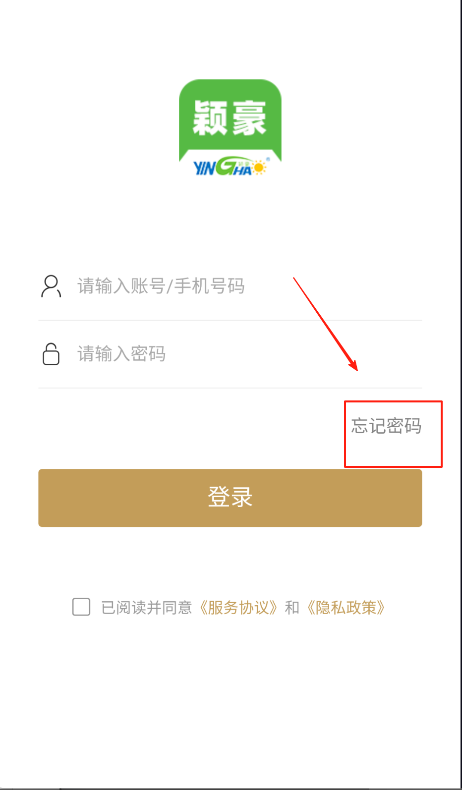 1、进入登录界面后若需找回密码,点击右侧"忘记密码"文字链接。