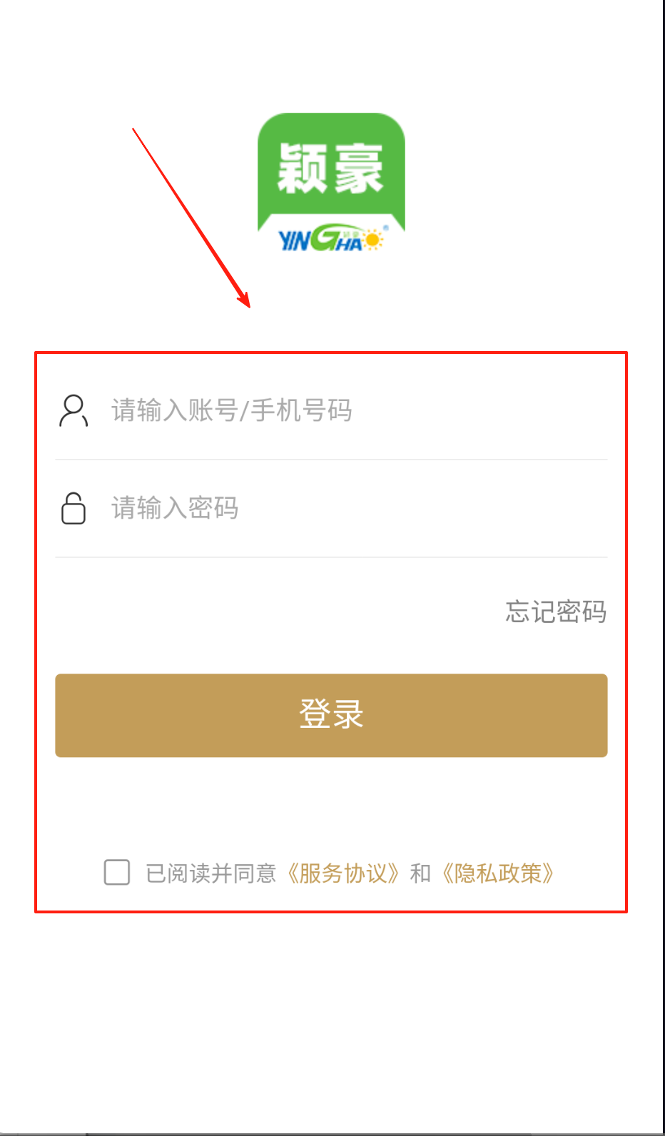 3、常规登录时在界面中央两个白色输入框分别输入注册账号或绑定的手机号码,正确填写登录密码后勾选底部协议复选框。