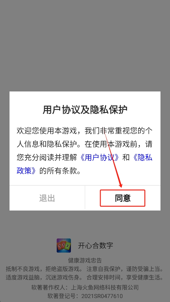 1、阅读并同意用户协议及隐私保护条款以继续游戏。