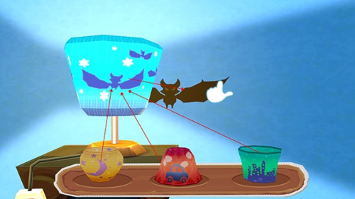 3、点击下方的蝙蝠台灯罩,然后就可以捕捉蝙蝠影子啦,还有其他两个灯罩,点击影子也会有变化,但是不会捕捉。