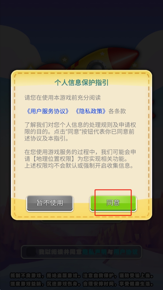 1、阅读并同意个人信息保护指引,开始游戏。