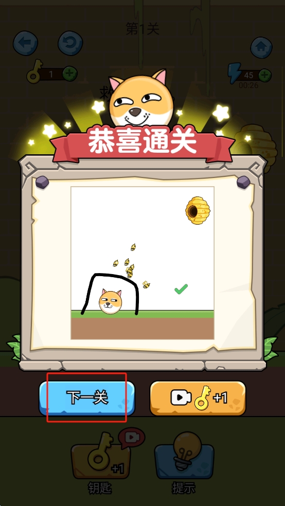 4、成功通关后,点击“下一关”继续游戏。