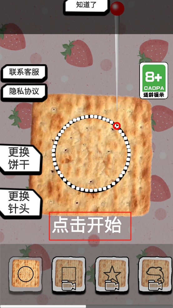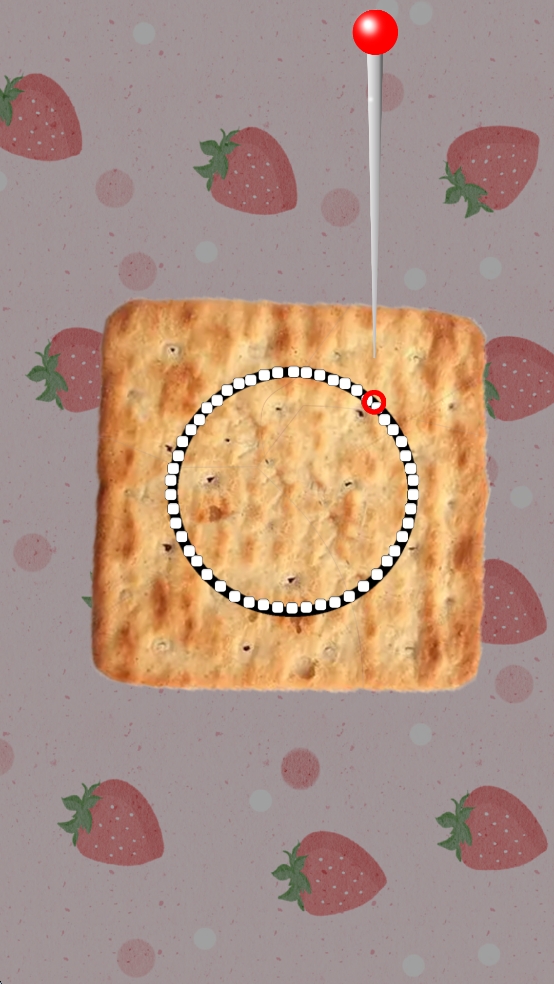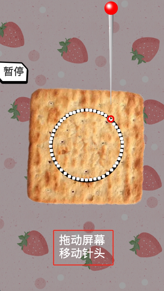 3、拖动屏幕移动针头,尝试将针穿过饼干而不破裂。